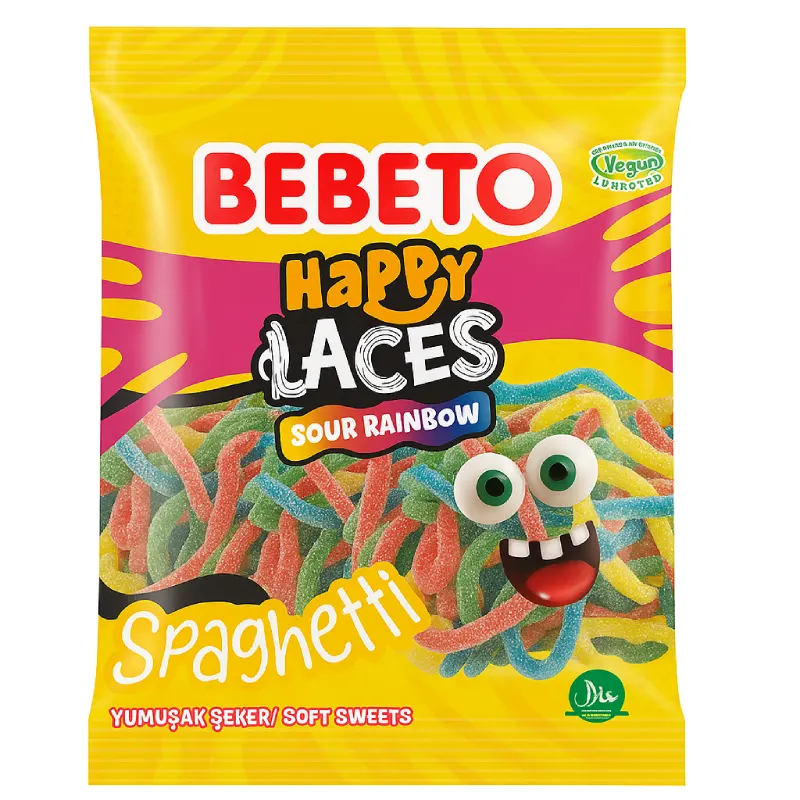 پاستیل اسپاگتی ترش هفت رنگ ببتو 80 گرمی | Bebeto Rainbow Spaghetti